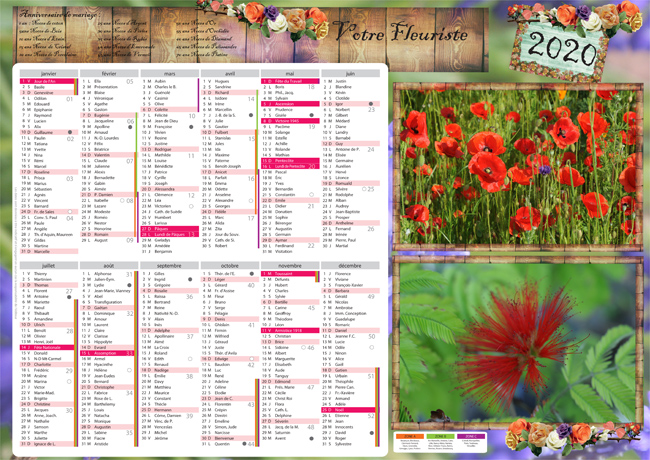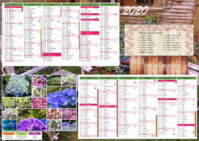 Calendrier 42cm x 30cm. Papier cartonné en 300g. (350g possible).
